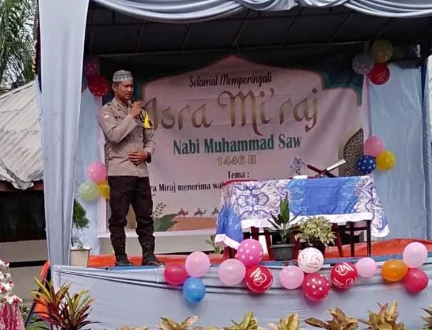 Nagori Teluk Napian, Simalungun — Dalam upaya mempererat komunikasi dan membangun sinergi dengan masyarakat, Bhabinkamtibmas Polsek Bosar Maligas, AIPDA Surya Atmaja, menghadiri peringatan Isra’ Mi’raj Nabi Muhammad SAW 1446 H di SDN 091709 Afdeling II Tinjowan, Nagori Teluk Lapian, Kecamatan Ujung Padang, Kabupaten Simalungun, Sabtu (22/2/2025).