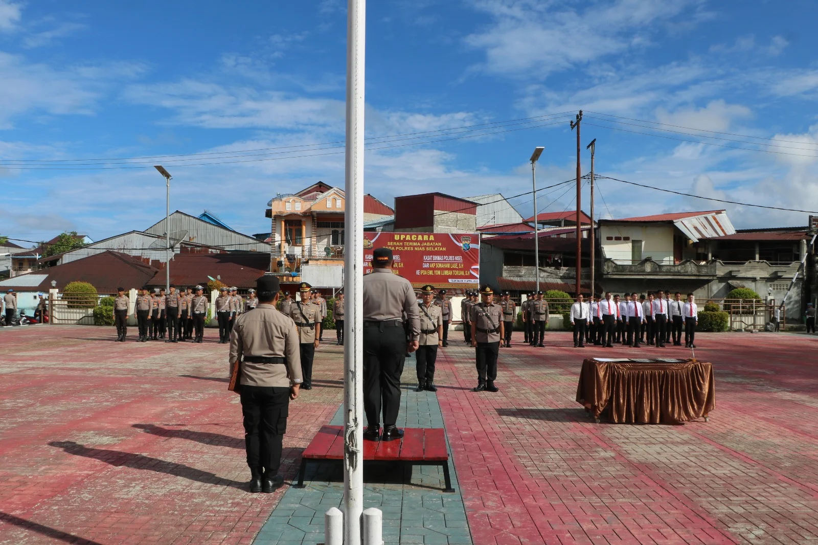 MATANEWSTV.com | Nias Selatan – Kapolres Nias Selatan AKBP Ferry Mulyana Sunarya memimpin langsung upacara serah terima jabatan (sertijab) Kasat Binmas dan Kabag SDM Polres Nias Selatan di lapangan apel Polres Nias Selatan, Jalan Mohammad Hatta Nomor 2, Teluk Dalam, Rabu (15/4/2026).