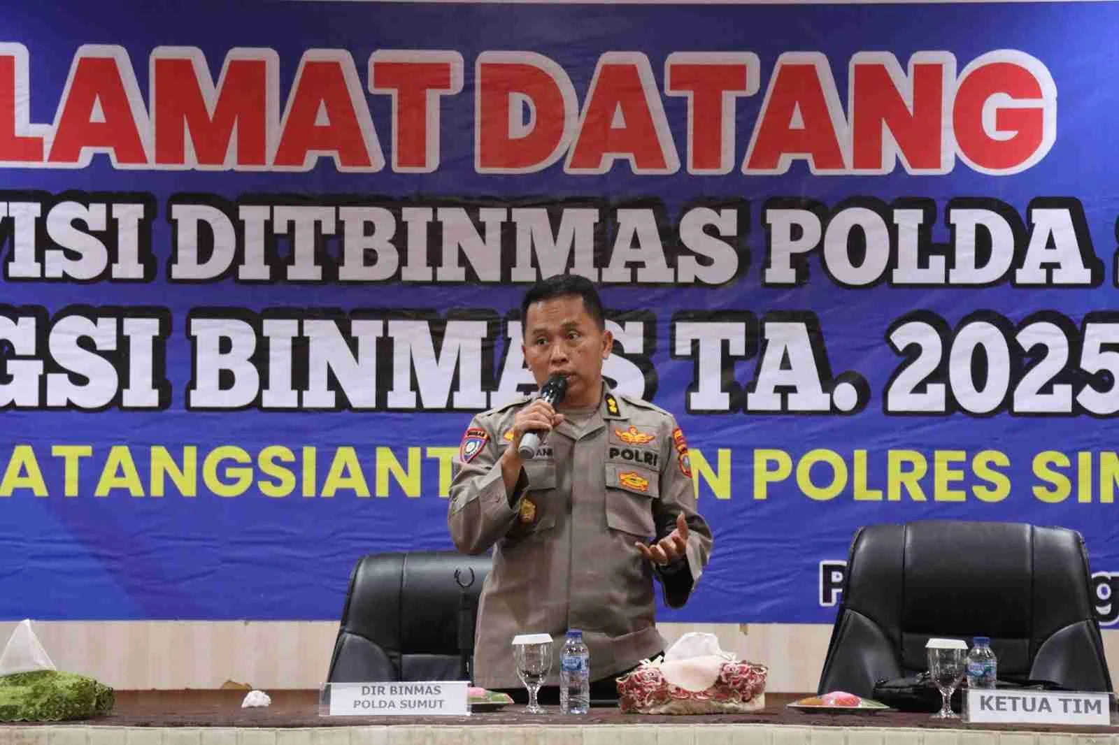 Pematangsiantar — Kapolres Pematangsiantar AKBP Sah Udur TM. Sitinjak, S.H., S.I.K., M.H., menerima kunjungan kerja (kunker) Tim Supervisi Fungsi Bimbingan Masyarakat (Binmas) Tahun 2025 dari Polda Sumatera Utara. Kunjungan ini dipimpin langsung oleh Dirbinmas Polda Sumut, Kombes Pol. Yus Nurjaman, S.I.K., M.Si, dan berlangsung di Aula Polres Pematangsiantar, Selasa (Mei 2025) pukul 11.00 WIB.