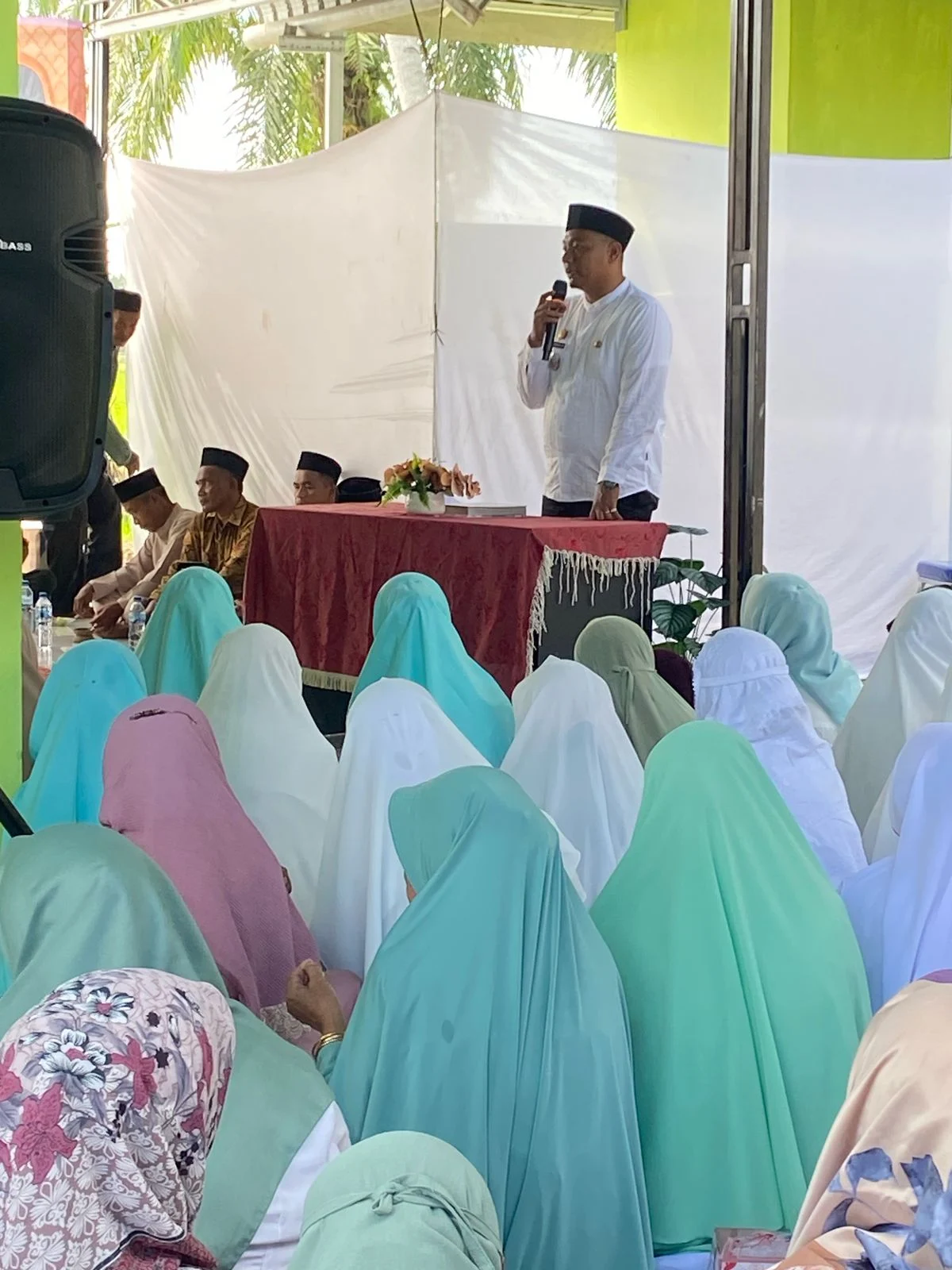 Ketua pengajian ibu-ibu, Saadah, turut hadir dan memberikan sambutan dalam suasana yang penuh kekeluargaan dan semangat ukhuwah Islamiyah.