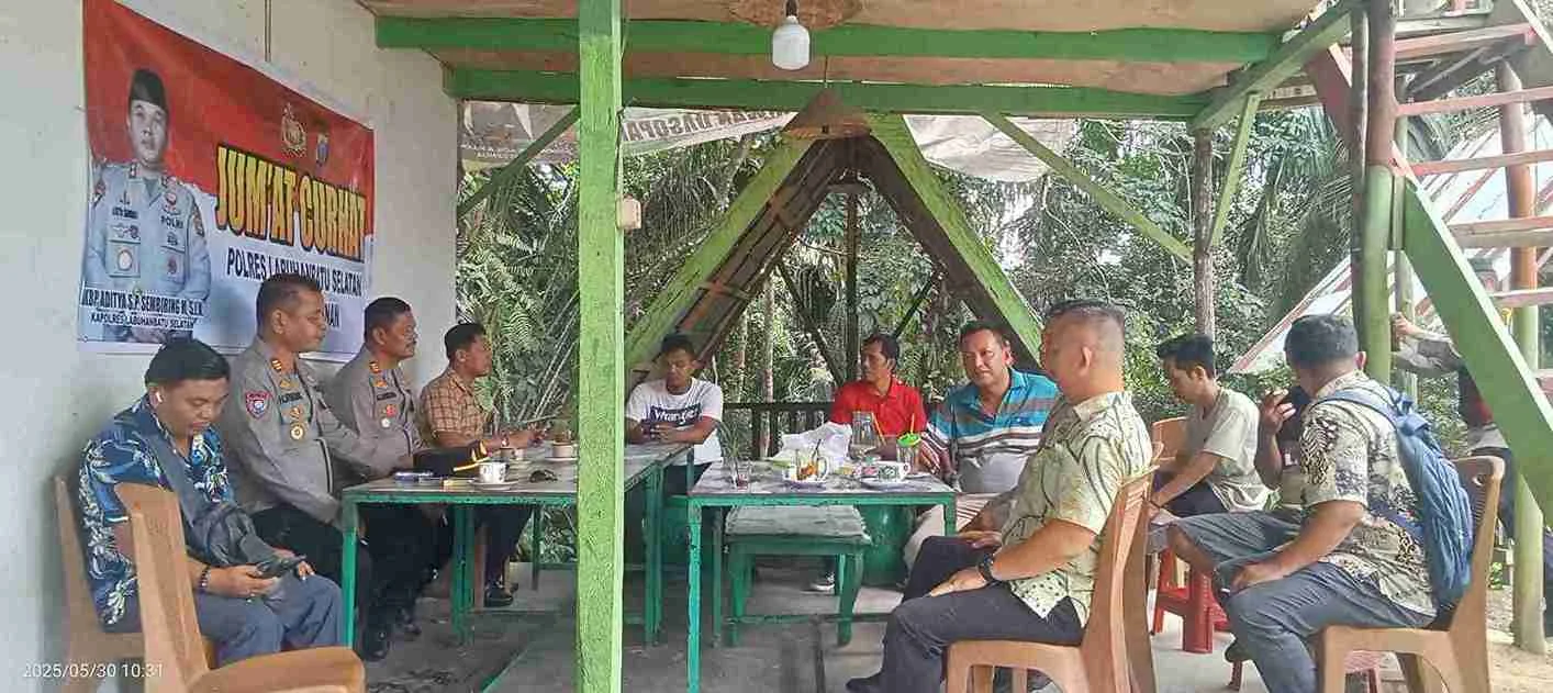 Labuhanbatu Selatan – Kepolisian Resor (Polres) Labuhanbatu Selatan kembali menyapa masyarakat melalui program unggulan “Jumat Curhat”, yang kali ini digelar di Warung Kopi Yunus, Lingkungan Martopotan, Kecamatan Sei Kanan, Jum’at (30/5/2025).