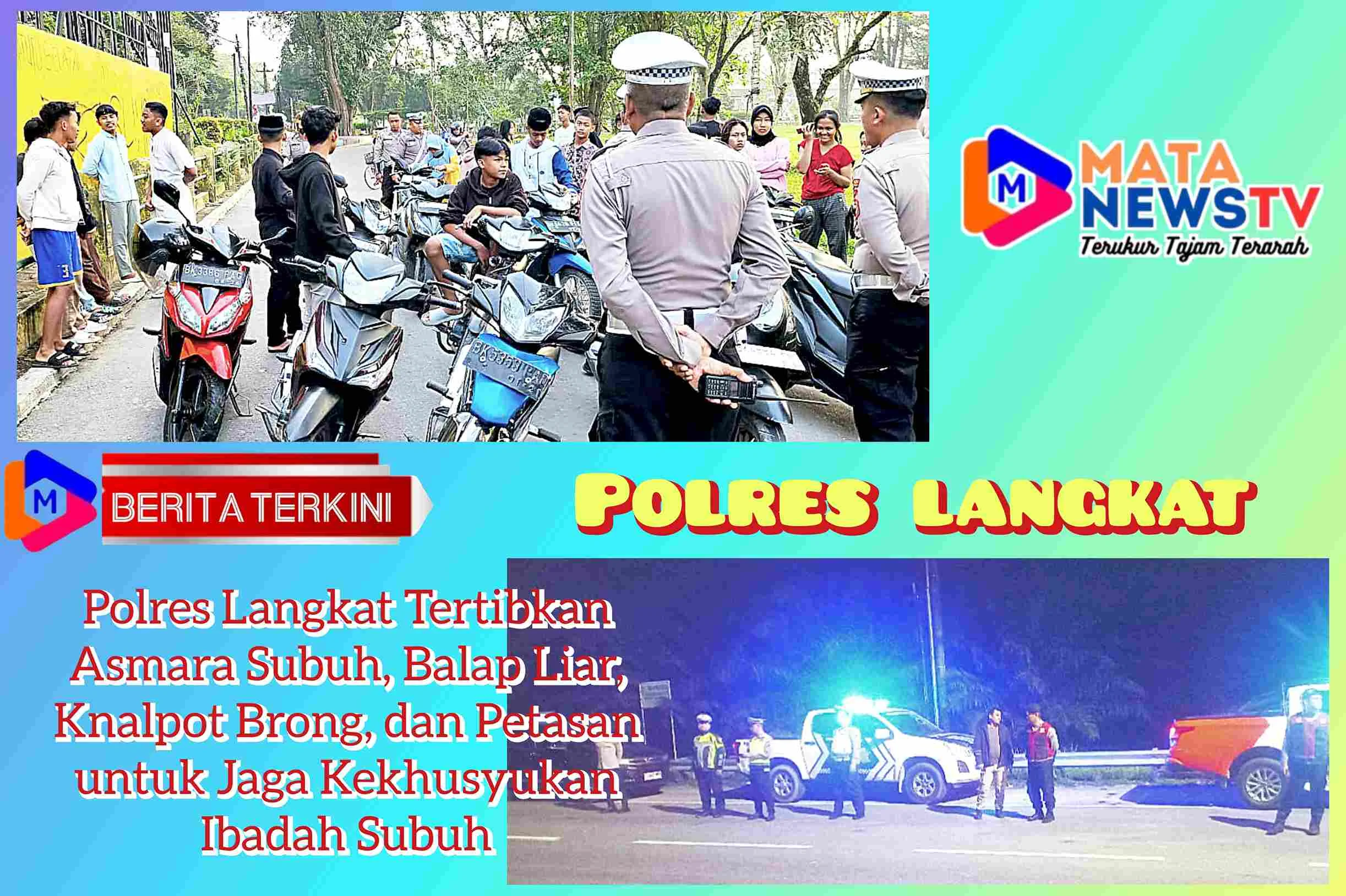 Dalam upaya menjaga kekhusyukan ibadah Sholat Subuh selama bulan suci Ramadhan 1446 H/2025 M, Polres Langkat menggelar operasi penertiban terhadap aktivitas Asmara Subuh, balap liar, penggunaan knalpot brong, dan permainan petasan di wilayah hukumnya.