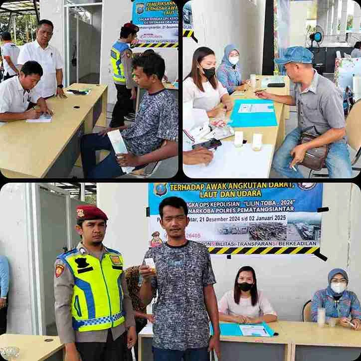 Pematangsiantar, Sumut — Dalam rangka Operasi Lilin Toba 2024, Polres Pematangsiantar yang dipimpin oleh Kasat Resnarkoba AKP JH. Pasaribu, SH, MH, melaksanakan tes urine bagi awak angkutan darat.