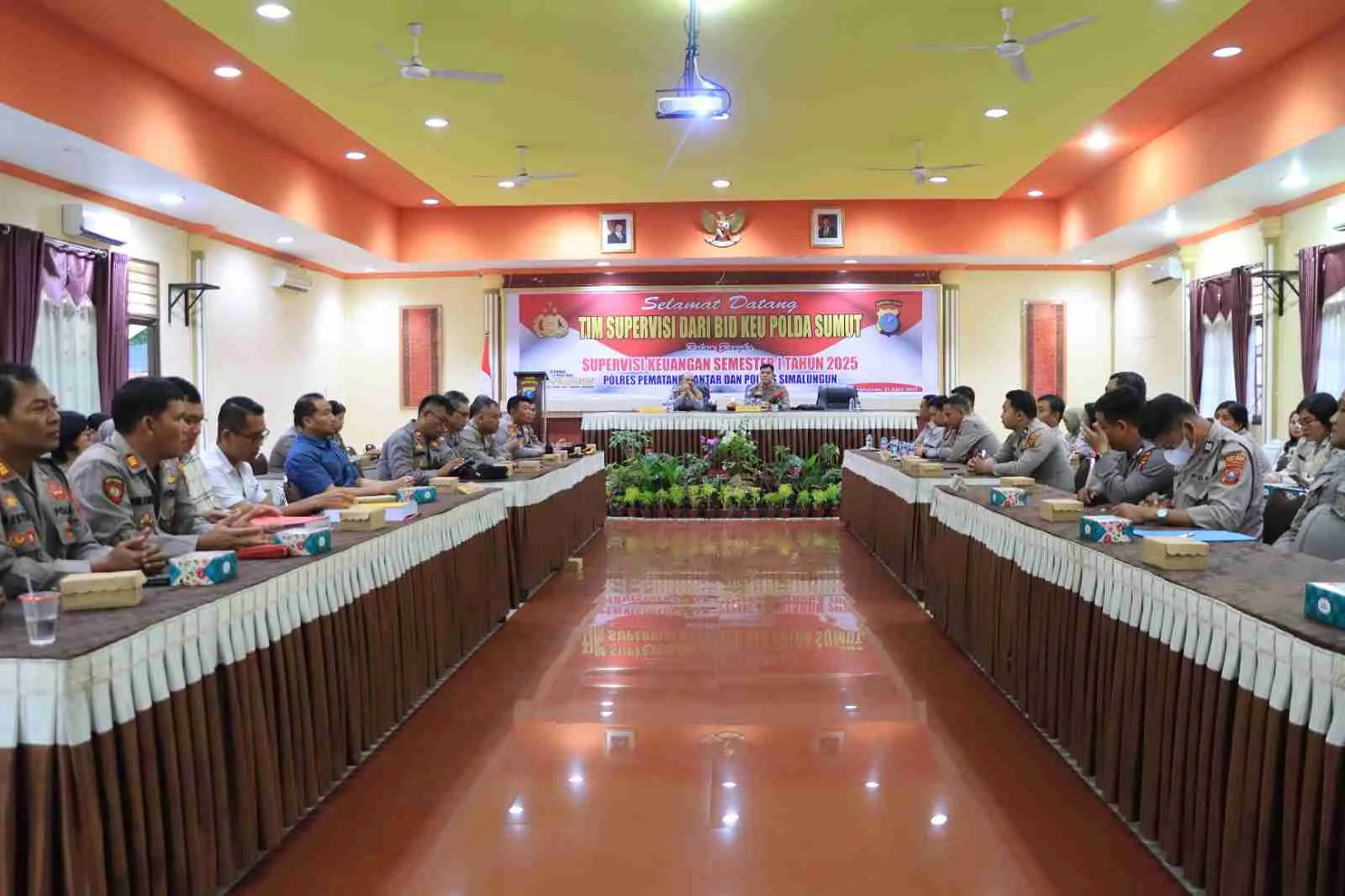 Pematangsiantar – Polres Pematangsiantar menerima kunjungan kerja Tim Supervisi Bidang Keuangan (Bid Keu) Polda Sumatera Utara (Sumut) dalam rangka Supervisi Keuangan Semester I Tahun 2025. Kegiatan ini digelar di Aula Polres Pematangsiantar, Jum’at (11/4/2025) pukul 09.00 WIB.