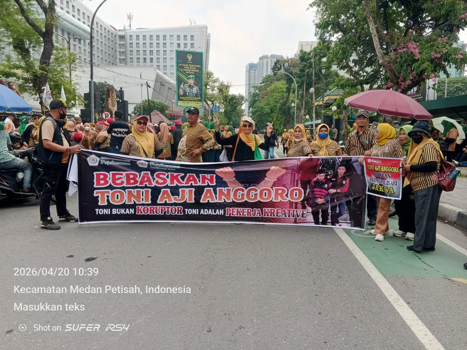 20 April 2026 — Ratusan massa dari organisasi Putra Jawa Kelahiran Sumatera (Pujakesuma) menggelar aksi unjuk rasa di depan Pengadilan Negeri (PN) Medan, Senin (20/4) sekitar pukul 10.00 WIB. Mereka mendesak majelis hakim membebaskan Toni Aji Anggoro yang telah divonis dalam perkara dugaan korupsi proyek pembuatan website dan video profil desa di Kabupaten Karo.