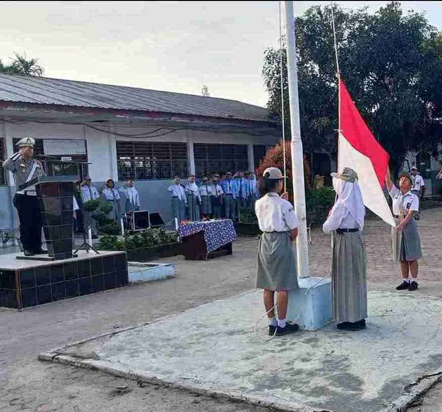 Kanit Gakkum Sat Lantas IPTU Elon Sitinjak, SH, dan Kanit Kamsel IPDA Syah Edi Suranta Purba, SH, hadir sebagai pembina upacara sekaligus memberikan sosialisasi kepada para siswa.