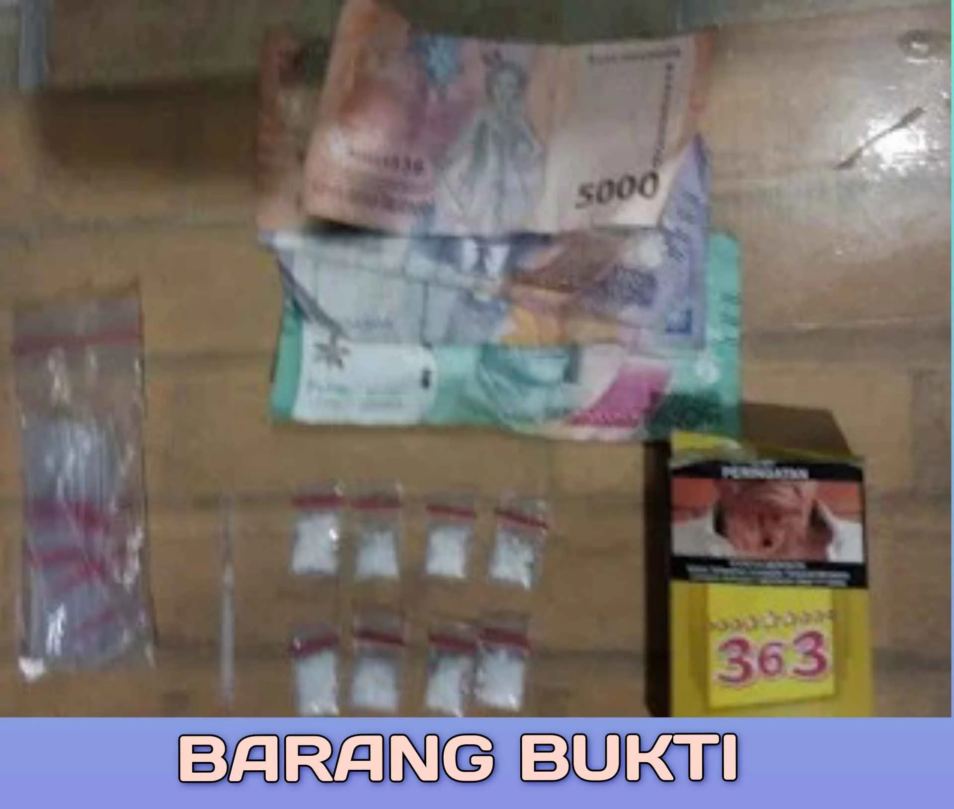 - uang tunai Rp50.000, serta satu kotak rokok.