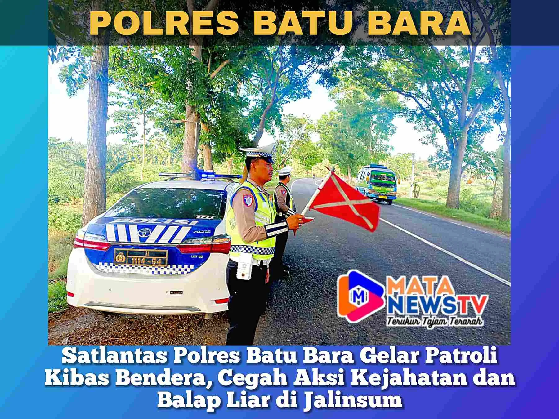 Batu Bara, MATANEWSTV.com — Dalam upaya menciptakan keamanan, ketertiban, dan kenyamanan berlalu lintas di wilayah hukum Polres Batu Bara, jajaran Satuan Lalu Lintas (Satlantas) Polres Batu Bara Polda Sumut menggelar kegiatan Patroli Kibas Bendera dan video situasi arus lalu lintas, Senin (14/4/2025) sore.